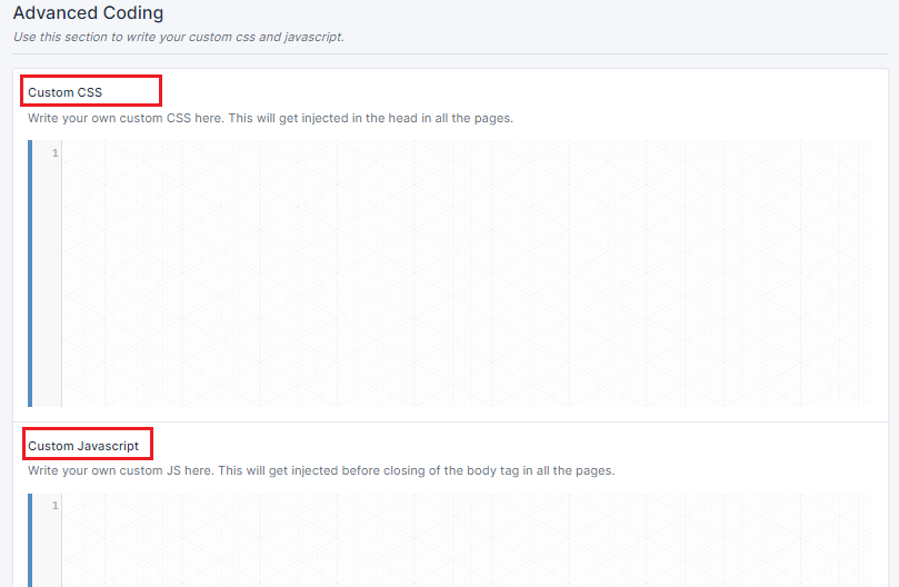 The Advanced Coding feature of LeadCenter.AI Website manages the customized CSS and JavaScript Coding. For using your advanced coding knowledge, Orxy Cloud provides a space for writing your customized codes in the supported formats. You can use the CSS and JavaScript to change fonts, colors, and backgrounds etc.