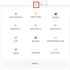 The Add option includes basic formatting options like adding paragraph, headline, image, headings, list etc.