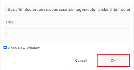 Click on the header or footer to add formatting options and Click on add icon (Add the add icon) The link dialog box is displayed.