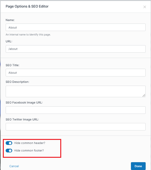 Click on Open page options & SEO editor icon . The Page Options & SEO Editor pop-up is displayed.