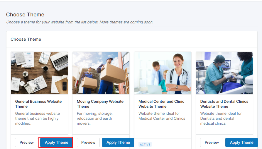Click on icon to see the newly applied theme for the website.