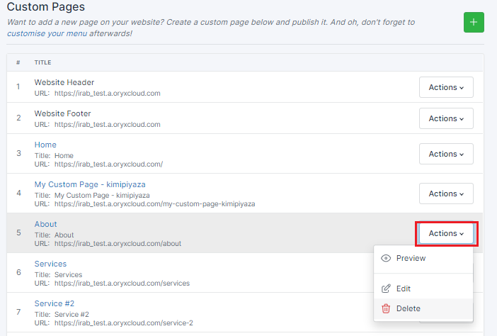 In LeadCenter.AI Store Manager > Website Builder, click Pages. The Custom Pages will be displayed.