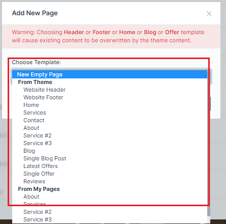 Choose from the available pre-built templates or choose New Empty Page to customize and create your own page